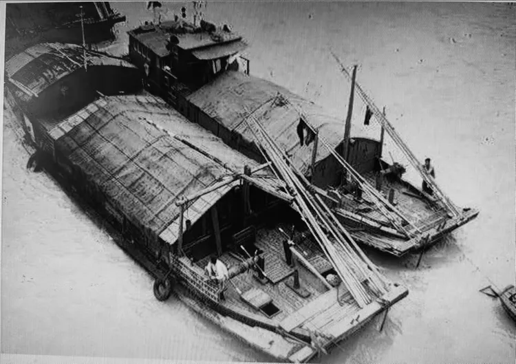 直到第三天夜晚,港务所调派大马力拖轮“上游12号”为我们拖船上江,这艘180匹马力的拖轮,机声隆隆,浪遏飞舟,一共拖了8条货船,我们的编队是二条船并排前行,每条船一人负责把舵,其他人可轮流睡觉。