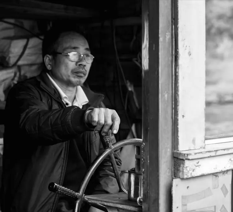 村长阿扬叔让我伴着他儿子阿星和阿厚一起撑船,还有退休的老船工桓叔、炳阳叔,船上一共五个人。