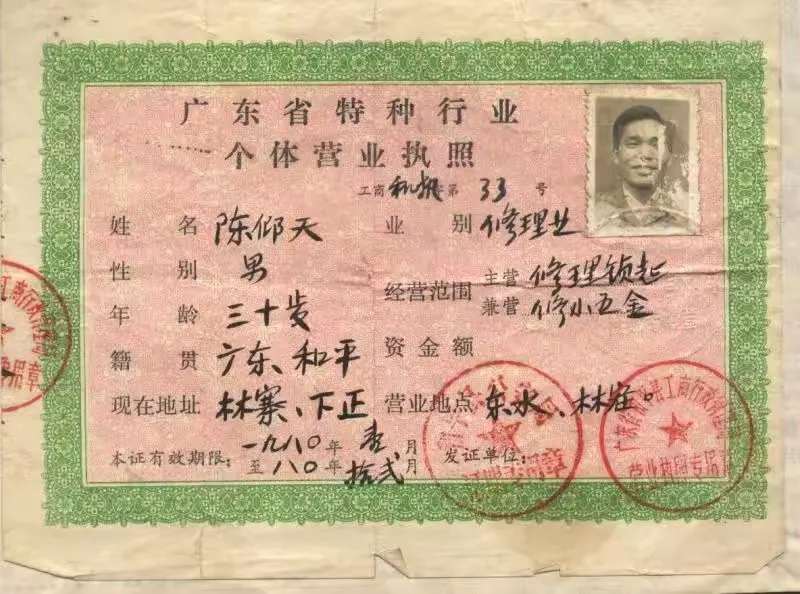 那年10月,我结束下乡修理的经历,在我舅舅李良才邀我下东水街发展,开设“建东五金修理部”,从此不用翻山涉水,走村过巷,在街市做起了老板,我诚信经营,礼貌待客,热情服务,收费合理,赢得人们的认可,当时“阿昂天”的名字在东水街是响当当。