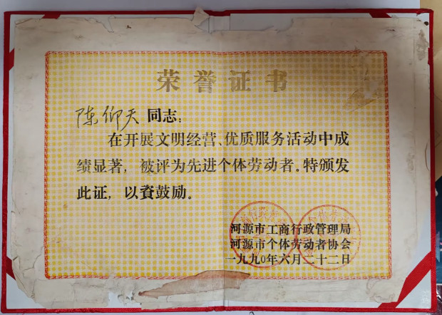 还被评为“广东省先进个体劳者”,